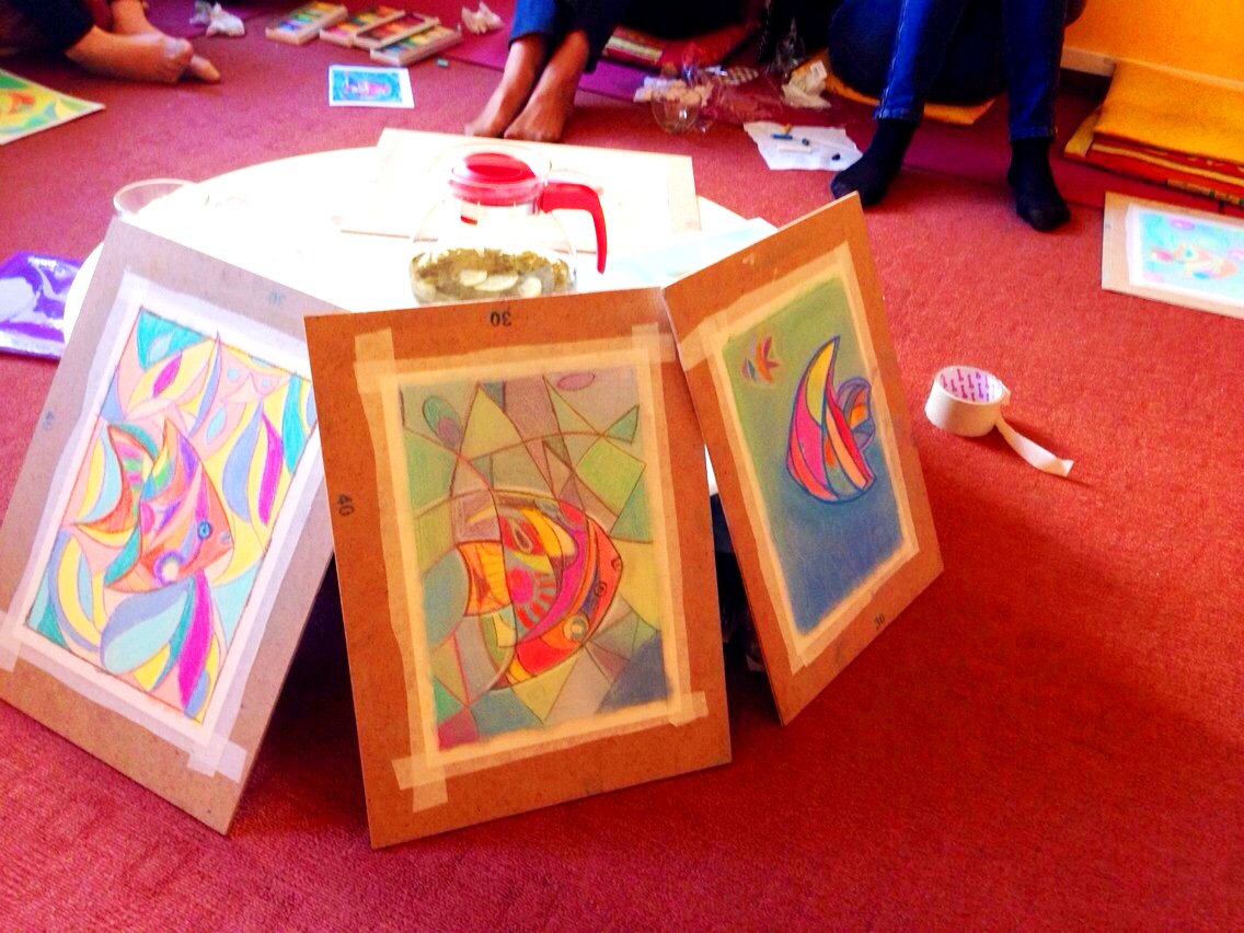 У нас целая выставочная галерея образовалась на творческом субботнике! Зал “Бодхи” фактически перенесся в другое пространство – в подводный мир) Только посмотрите, сколько радостных оттенков, сколько милых рыбок мы нарисовали на занятии! Благодарим всех за старания, креатив и поздравляем с успехами в рисовании пастелью!